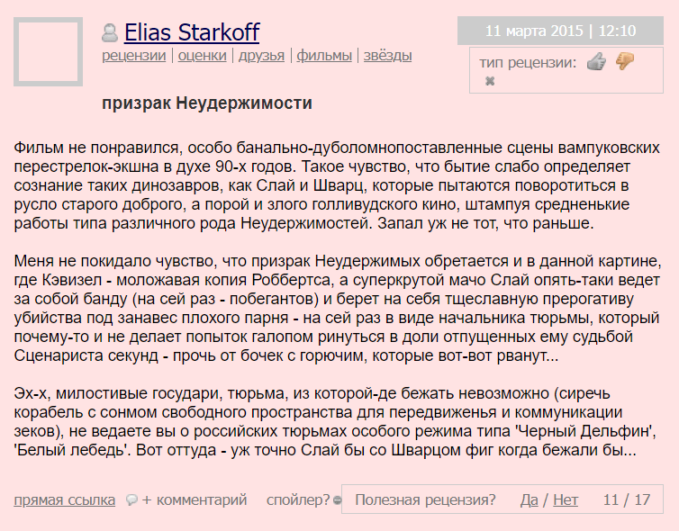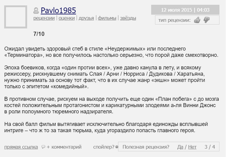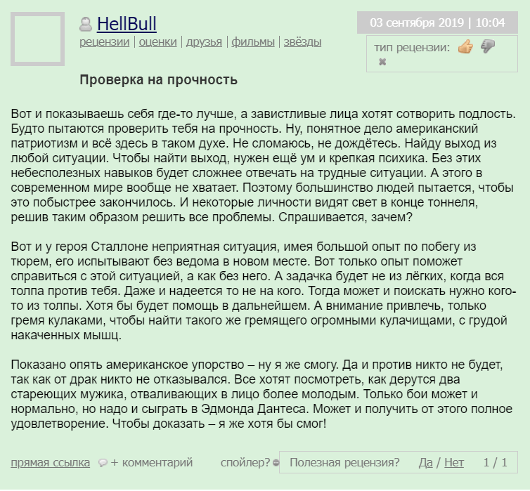 план побега в хорошемВторой фильм получил массу отрицательных отзывов от критиков. Существует немало крайне негативных рецензий, к которых создателей обвиняют в откровенной спекуляции на успехе первого фильма и продаже одного и того же под разными соусами. При этом это все тот же типичный американский боевик с хорошо поставленными боевыми сценами, добротной постановкой и известным актером в главной роли. Однако если зритель не является поклонником Сильвестра Сталлоне, картина ему скорее всего не понравится.план побега качество